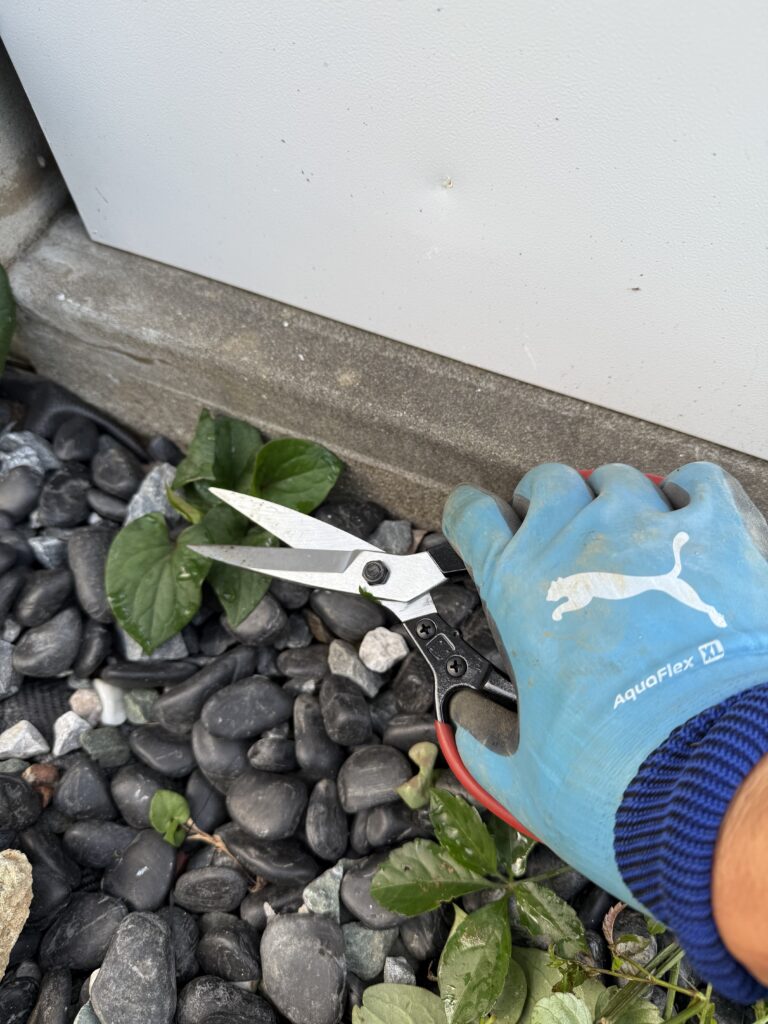 ドクダミは”地下茎”で広がり抜き切れないとすぐ復活する厄介な植物であるため、葉を切ることで光合成を止めて株の勢いを弱め、地下茎の繁殖力を低下させることが出来ます。